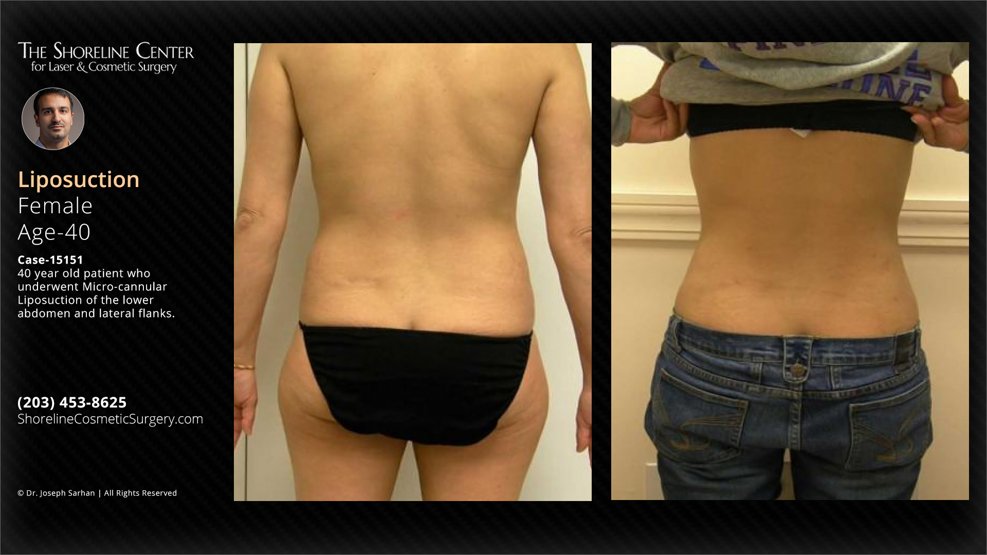 40 year old patient who underwent Micro-cannular Liposuction of the lower abdomen and lateral flanks. The After photos were taken seven weeks after the procedure. Note the improvement in the lower abdomen and the Coolsculpting of the flank (side) area. Individual results may vary.