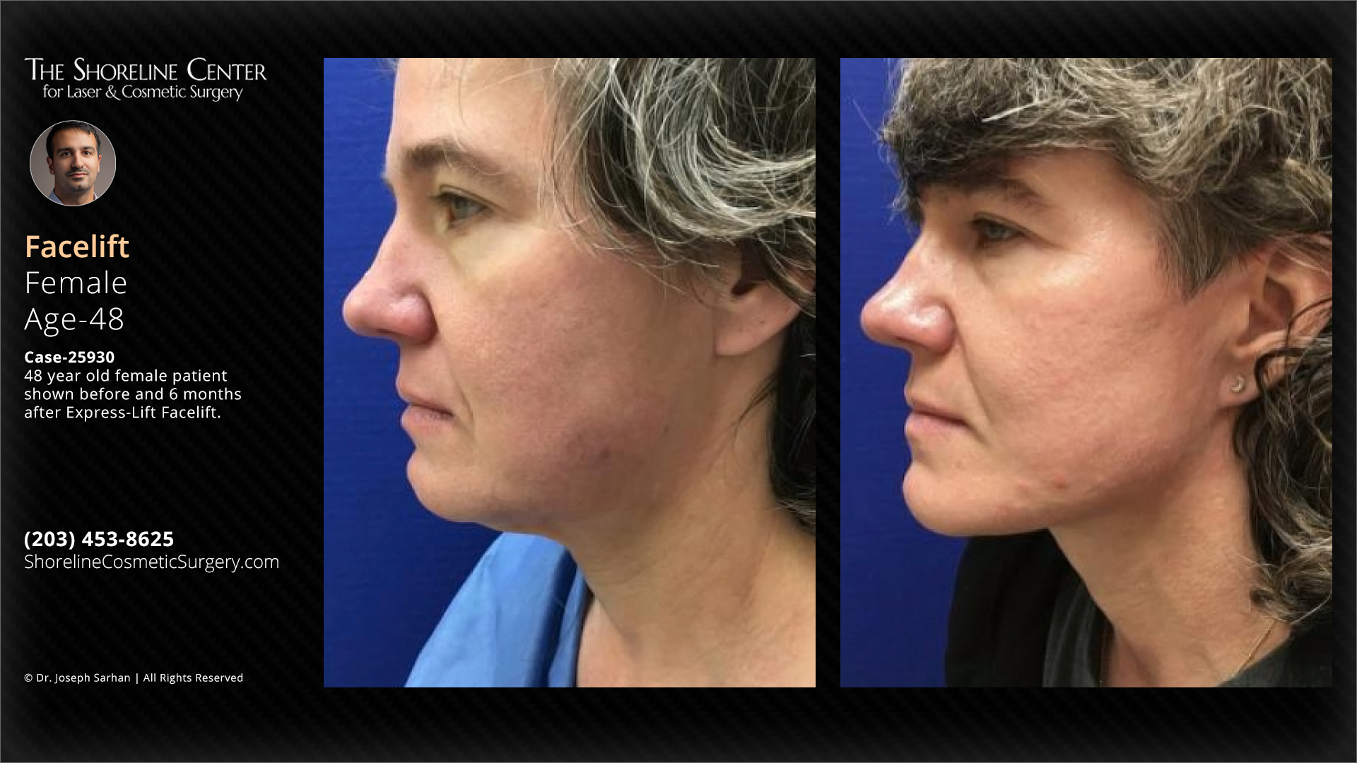 48 year old female patient shown before and 6 months after Express-Lift Facelift. Individual results may vary.