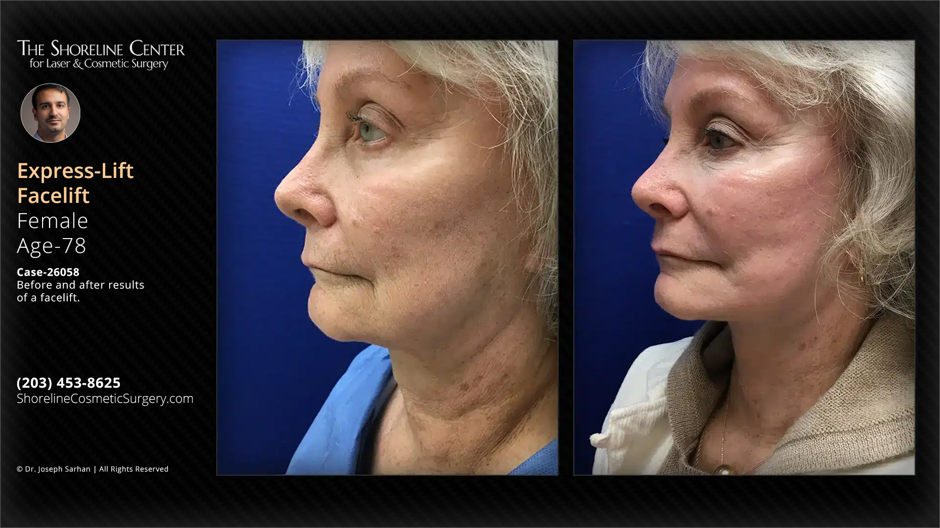 Before and after results of a facelift. Individual results may vary.