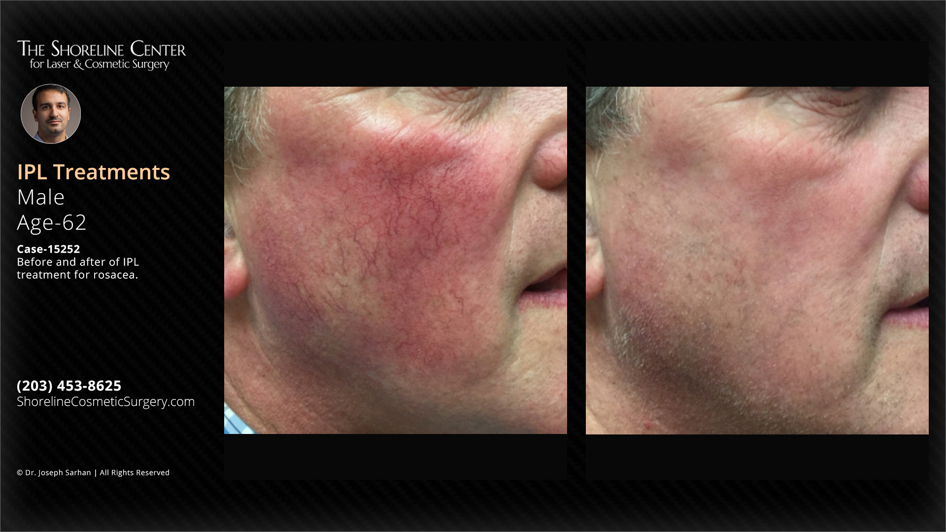 Before and after of IPL treatment for rosacea. Individual results may vary.