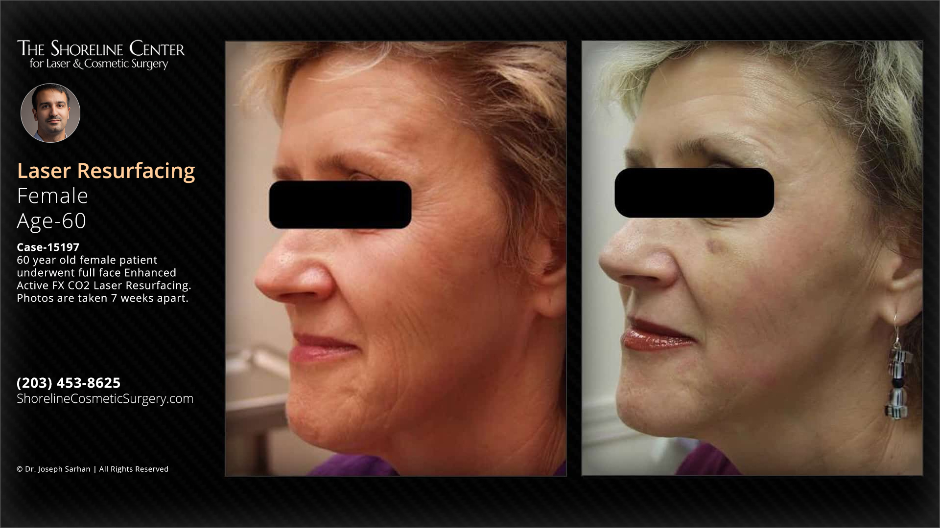 60 year old female patient underwent full face Enhanced Active FX CO2 Laser Resurfacing. Photos are taken 7 weeks apart. Individual results may vary.