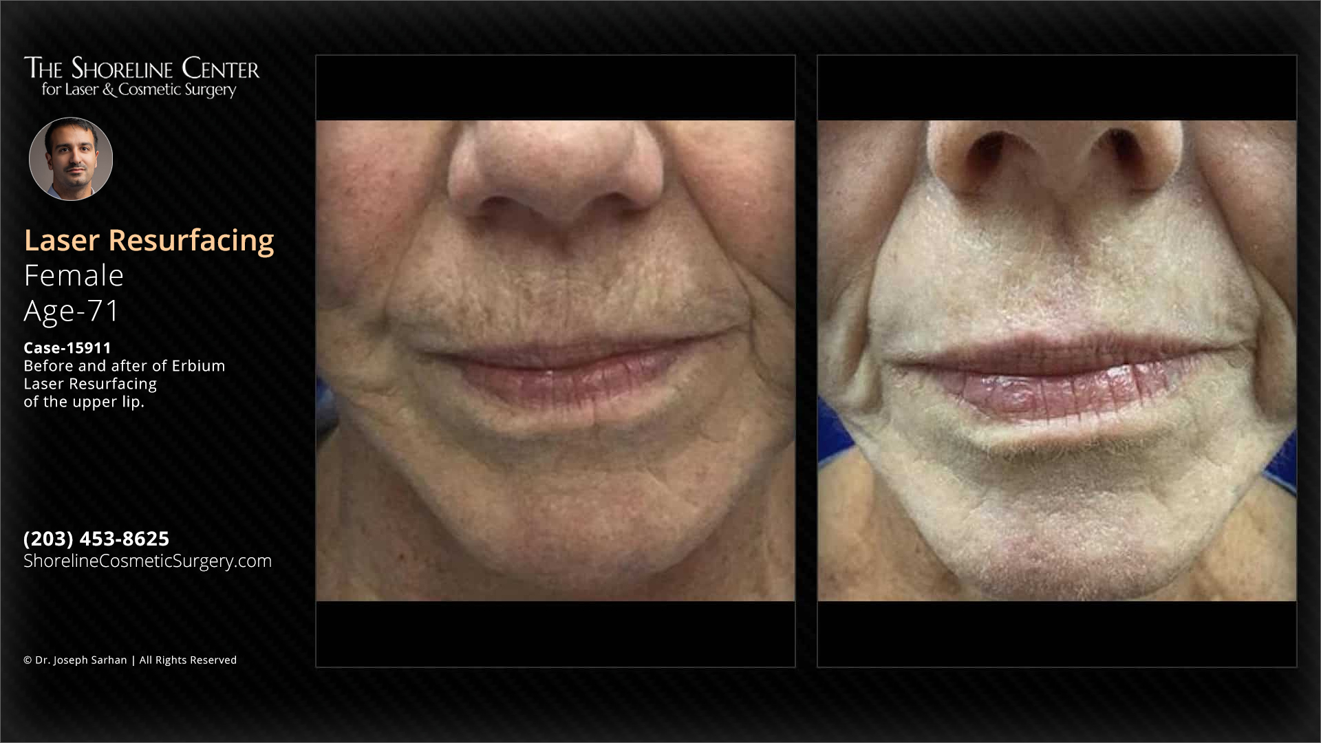 Before and after of Erbium Laser Resurfacing of the upper lip. Individual results may vary.